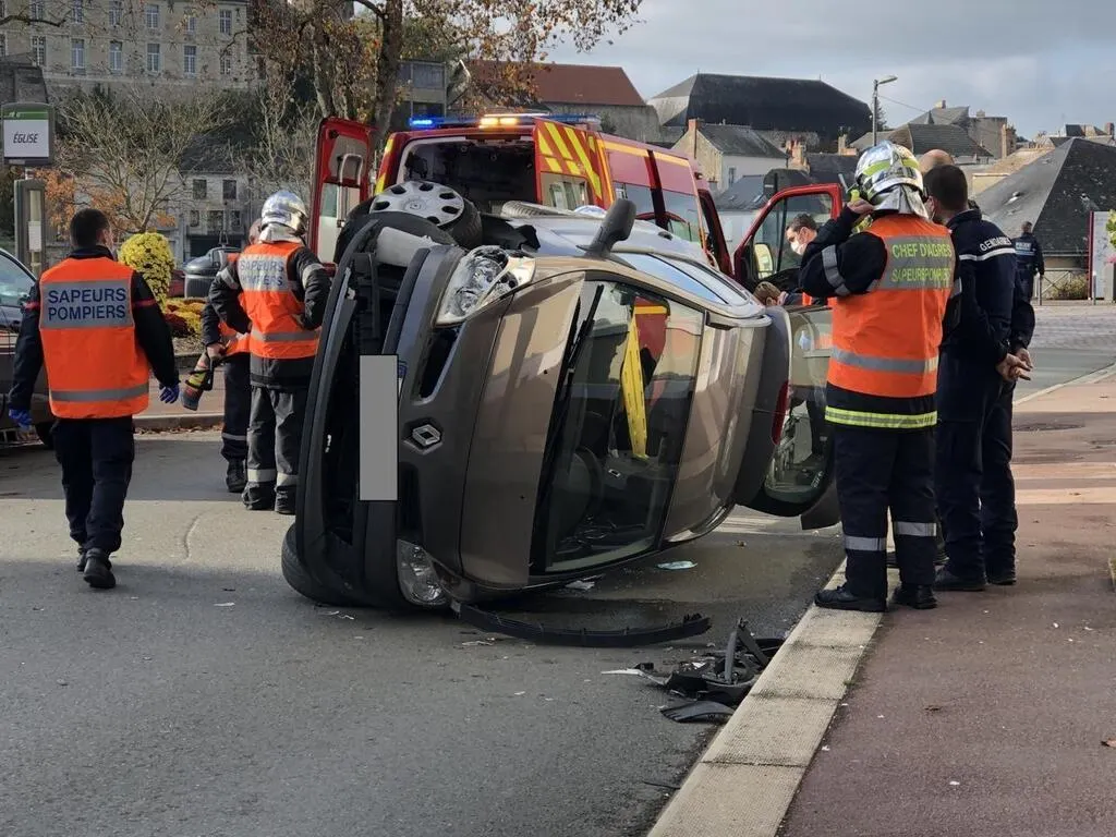 Sable Sur Sarthe Une Voiture Termine Sa Course Sur La Tranche Devant L Eglise Deux Blesses Le Mans Maville Com